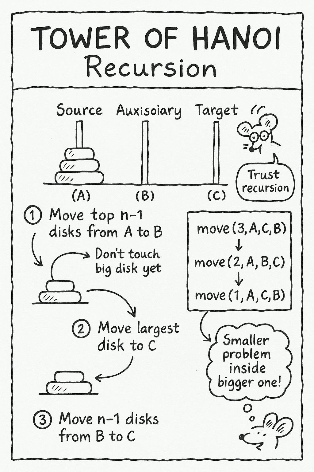 - الحل الأمثل لهذه اللعبة هو (2^n - 1) خطوة، حيث n هو عدد الأقراص.